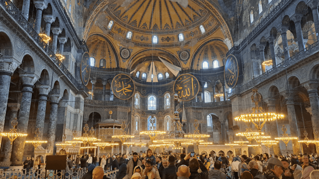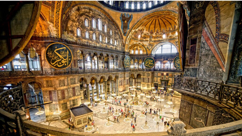Tai didingas VI a. Bizantijos laikotarpio statinys su 56 m aukščio kupolu, kurį puošia užrašai iš Korano.