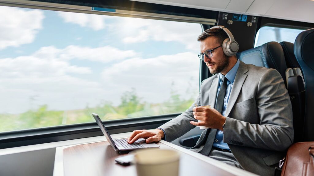 - Traukinyje – tik kelionės metu.